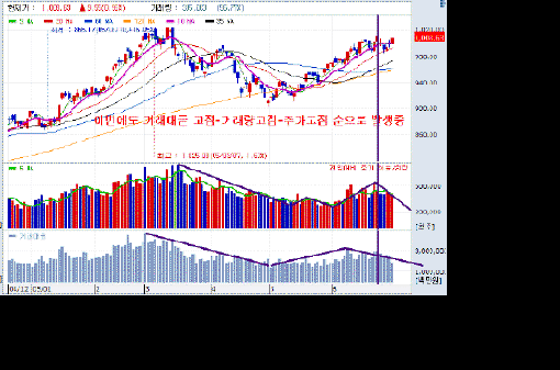 ▷ 거래량의 흐름이 주가의 흐름보다 시차상 조금 선행하는 것이 일반적이다. 따라서 거래량의 흐름을 잘 분석하면 주가의 흐름을 예측하는 데 큰 도움이 된다는 의미의 증시격언.