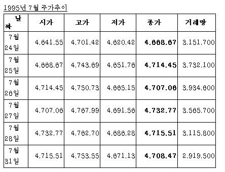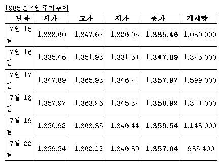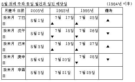 과거 ‘계미(癸未)월의 무오(戊午)일’은 1985년 7월 18일, 1995년 7월 26일이 해당되는데 공히 전일대비 주가가 하락한 결과를 보였다. 또 ‘계미(癸未)월의 경신(庚申)일’ 또한 1985년 7월 20일과 1995년 7월 28일의 양일 상황이 모두 하락세를 나타냈다.