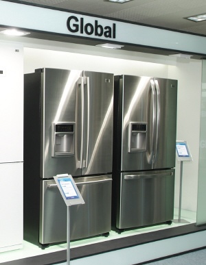 이 중에서도 LG전자의 3도어 냉장고는 세계 최고로 손꼽힌다. 냉동실 문앞부분이 비스듬히 열리는 틸팅기술과 아이스홈바, 유기능 광특선실과 초절전 기능등은 경쟁제품보다 10%이상 비싸도 잘팔리는 이유들이다.