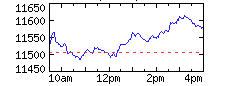 25일(현지시간) 뉴욕 증시에서 다우지수(그래프)는 1만1575.81을 기록, 67.71 포인트(0.59%) 상승했고, 나스닥은 2249.07로 30.14 포인트(1.36%) 상승했다. 특히 S&P 500은 1326.37로 11.59 포인트(0.88%) 상승, 5년6개월전에 기록했던 1326.27포인트보다 11.59포인트 높은 최고치를 기록했다.
