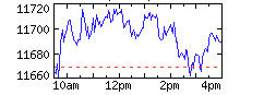 27일(현지시간) 뉴욕 증시에서 다우지수(그래프)는 전날보다 19.85 포인트(0.17%) 오른 1만1689.24를 기록했다. 이는 지난 5월 기록했던 연중최고치 1만1670.19을 넘어선 것이며 사상최고치엔 33포인트 모자란 것이다.