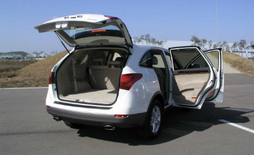 원터치로 풀 플랫이 되는 2,3열 폴딩시트도 공간 확보에 편리하다. 3열만 앞으로 젖혀도 골프백 4개, 보스턴백 4개는 넉넉하게 넣을 수 있다고 회사측은 강조했다. 아울러 베라크루즈의 트렁크 문은 원터치 전동식으로 쉽게 여닫을 수 있게 했다.