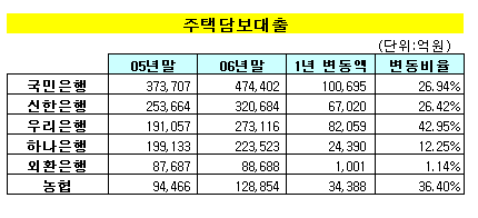 ◆주택담보대출, 국민-우리銀 두각