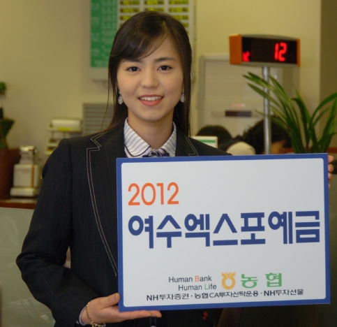 '2012 여수엑스포예금'은 거치식예금으로 계약기간은 3개월 이상 3년이내에서 자유롭게 정할 수 있으며 가입금액은 개인 100만원 이상, 법인 1000만원 이상이다. 금리는 1년만기 기준 연 4.9%.