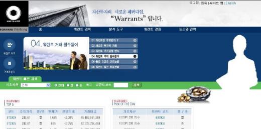 외국계증권사로는 최초로 ELW 발행사 및 유동성공급자(LP)로 나선 맥쿼리증권도 전용 웹사이트(www.warrants.co.kr) 를 개설했다.