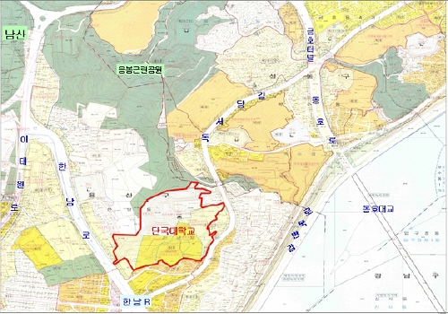 서울시는 지난 18일 도시계획위원회를 열고 용산구 한남동 60번지 일대 13만5855㎡(4만1096평) 규모의 단국대 서울캠퍼스를 도시계획시설상 '학교 용지'에서 해제했다.
