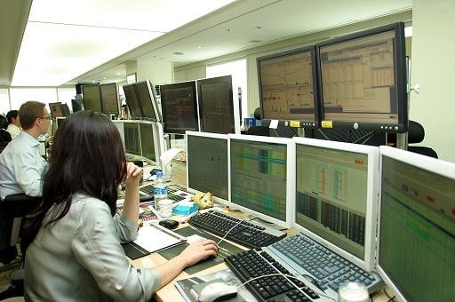 서로 대화를 주고받고는 있지만 시선은 각각 책상 앞에 놓인 9개 모니터에 고정돼 있다. 손가락 만이 빠르게 움직일 뿐이다. 간혹 영어로 주문을 넣는 전화통화 소리도 오간다.