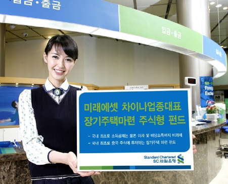 SC제일은행은 국내 최초로 연말 소득공제 및 비과세 혜택이 있는 해외투자펀드인 '미래에셋 차이나업종대표 장기주택마련 주식형 펀드'를 16일부터 판매한다. 해외주식에 투자하는 장기주택마련펀드가 출시되기는 이번이 처음이라는 것이 은행측의 설명.