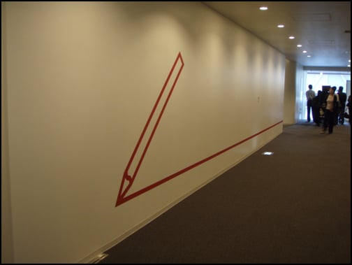 그 바로 옆 벽면에는 커다란 연필과 그 연필심에서 출발한 선이 벽면을 타고 이어졌다. 이 선은 PIF 전체 벽을 타고 끊어지지 않고 쭉 이어진다는게 회사측의 설명이다.