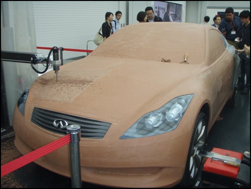 마침 '인피니티 G37 쿠페'의 클레이(진흙) 모형이 제작되고 있었다. 클레이 제작은 디자이너가 구상한 이미지를 3D로 제작한 후 실제 차량과 똑같이 만들어 보는 작업. 이 단계를 통과하면 본격적인 차량 개발로 이어진다는 점에서 중요한 작업이다.