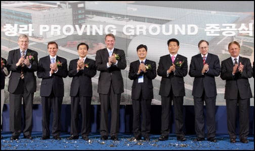 GM대우차는 인천경제자유구역 청라지구 내 47만7443㎡(14만5000평) 부지에 1000억원을 투입, 주행시험장과 시험연구동을 갖춘 '청라 프루빙 그라운드(Cheong-Na Proving Ground)'를 건립, 30일 준공식을 열었다. 2005년 10월 착공한지 2년만이다.