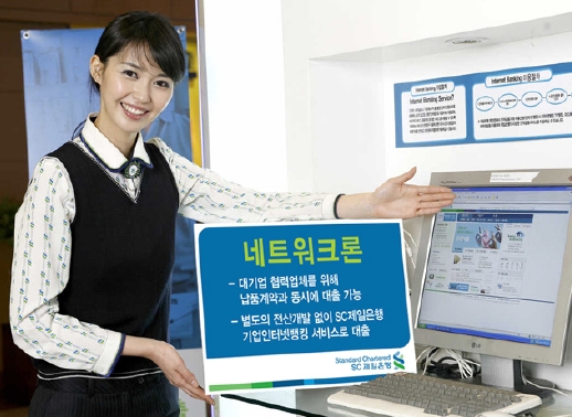 SC제일은행은 15일부터 구매기업의 협력업체들에게 대기업의 발주서를 근거로 생산자금 및 매출채권 담보대출을 해주는 '네트워크론'을 판매한다.