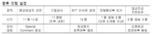 한신평은 "실사와 이사회 승인, 본계약 체결, 정통부 승인, 주총의결 등이 남아있어 최종 성사 여부는 좀 더 지켜봐야 할 것"이라면서도 "SKT가 인수할 경우 장기적으로는 결합상품과 유통망 공유를 통한 가입자 기반의 강화가 예상된다"고 예상했다.