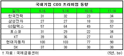 최근 불거진 비자금 사건 영향에도 불구하고 삼성전자의 CDS 프리미엄(33bp)은 전월보다 11bp상승하는데 그쳤다.