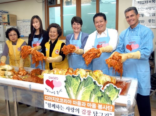 디아지오코리아(대표 김종우)는 11일 임직원들이 서울 강북구립장애인보호작업장에서 조손가정 40가구를 대상으로 김장을 담궈주는 행사를 진행했다고 밝혔다. 디아지오코리아의 봉사단체인 마음과 마음 봉사단은 대한적십자사와 연계해 저소득 소외계층을 대상으로 다양한 자원봉사와 물품 지원 활동을 펼치고 있다. 독자들의 PICK! 5년 전 사라진 걸그룹 리더 충격 폭로…"빚쟁이라며 인터넷방송 시켜" 친구 아내와 바람난 남편...월 300만원 받고 방 잡아준 친구 배우 정은우, 돌연 사망 비보…하루 전엔 SNS에 장국영 사진 구준엽, 서희원 '400억 유산' 두고 장모와 갈등? 처제 입 열었다