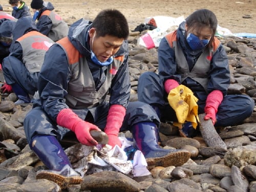 디아지오코리아의 마음과 마음 봉사단 40여명은 지난 22일 충남 태안군 북면 양챙이 마을 해안 지역을 방문해 흡착포, 헌옷가지를 이용해 기름으로 오염된 돌맹이 등을 닦으며 해안 살리기에 힘을 보탰다. 또한 피해주민들을 위해 컵라면, 방진마스크 등 각종 구호물품도 전달했다. 독자들의 PICK! 친구 아내와 바람난 남편...월 300만원 받고 방 잡아준 친구 제니, 50억 집도 사더니...용산 '200억' 건물 전액 현금 매입 배우 정은우, 돌연 사망 비보…하루 전엔 SNS에 장국영 사진 구준엽, 서희원 '400억 유산' 두고 장모와 갈등? 처제 입 열었다