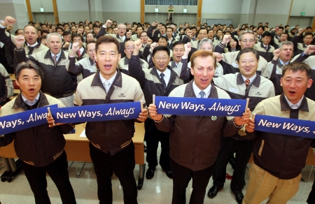 GM대우는 부평, 군산, 창원, 보령 등 각 지방사업장에 새 슬로건이 새겨진 옥외 간판과 배너 등을 설치하고, 부평 본사 각 출입문에는 'New Ways, Always' 슬로건 시설물을 설치할 예정이다.