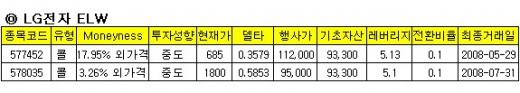 한국증권은 LG전자의 6개월 목표주가를 13만2000원으로 제시하며 7452콜ELW와 8035콜ELW를 이번주 투자종목으로 선정했다.