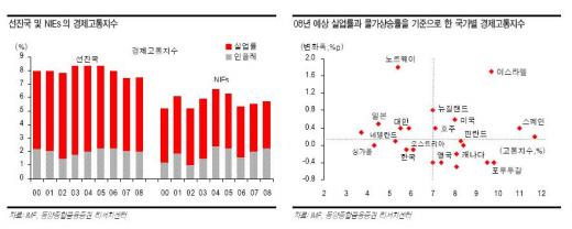 IMF가 발표한 2008년 전망치를 기준으로 추정하자면, 선진국과 신흥아시아가(NIEs : 한국,대만, 싱가포르, 홍콩 등)의 경제고통지수는 전년대비 각각 +0.1%p 와 +0.2%p 씩 상승할 것으로 전망되지만 여전히 낮은 수준이라는 것.