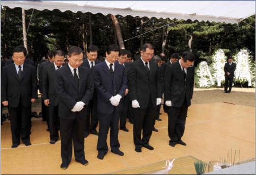 정몽구 그룹 회장은 지난주말 미리 선영을 찾은데 이어 지난 20일 저녁 범 현대가 친인척들과 함께 제사를 지냈다.