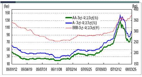 BBB급 회사채는 높은 가산금리를 줘도 발행하기 어려운 모습이다.