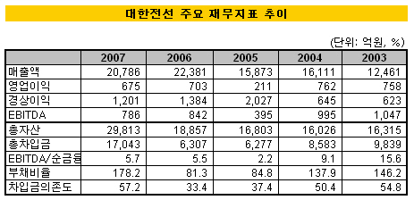 투자금액의 상당부분이 차입을 통해 조달되면서 2003년과 2007년의 부채비율이 각각 146.2%, 178.2%로 전년과 비교해 급격히 뛰었다.