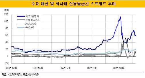 회사채 신용 스프레드가 확대된 것은 기업 신용문제가 아니라 은행의 신용에 금이 갔기 때문이라는 분석이 나왔다. 은행채 때문에 덩달아 값이 떨어진 회사채는 절호의 매수 기회라는 분석이다.