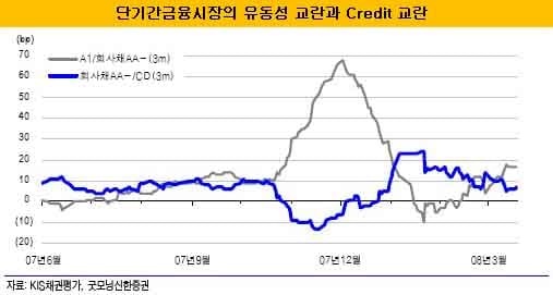 이는 스프레드 확대가 기업신용 이슈에서 나온 것이 아니라 오직 은행 요인에 있었던 것이 원인이라는 것이다. 급기야 사실상 신용등급이 AAA인 은행 CD가 회사채 'AA-'보다 저평가되는 현상도 나타났다.
