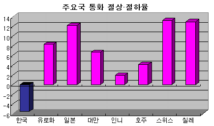 원화환율은 작년 하반기를 정점으로 상승 추세를 그리면서 달러화에 대해 4월말 현재 전년말 대비 6.15% 절하됐다. 오히려 물가 상승을 자극하는 요인이 되고 있다. 유로존을 포함한 주요 국가들과는 정반대 현상이 나타나고 있다.