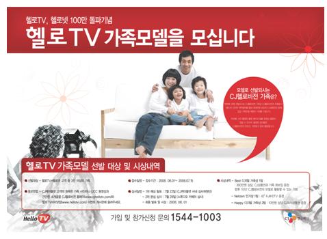 CJ헬로비전이 디지털케이블 방송 '헬로TV' 가족 모델을 선발한다고 3일 밝혔다.