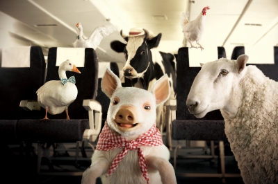 지난달 등장한 썬업리치애플 CF '비행기편'도 대표적인 애니메트로닉스를 활용한 광고다. 이 광고에 출연한 돼지는 호주 영화 '꼬마돼지 베이브' 제작진들이 만들었다. 또 여러 동물들이 "사과사과사과 주스~ 썬업썬업썬업리치"라는 CM송을 함께 부른다.