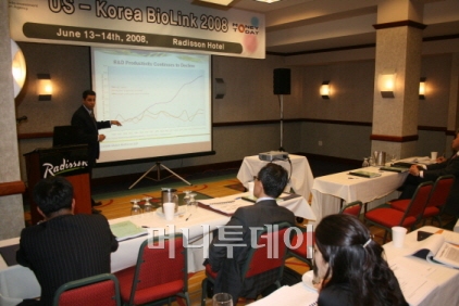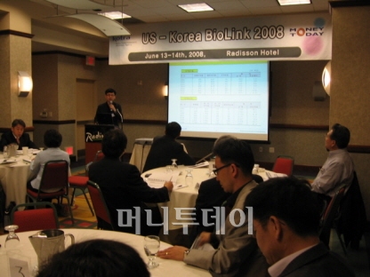 13~14일(현지시간) 이틀간 미국 샌프란시스코의 라디슨 호텔에서 머니투데이-코트라가 공동기획한 '코리아-USA 바이오링크2008'이 개최됐다. 국내 바이오.제약사의 기술협력을 촉진하기 위해 기획된 이번 행사에는 9개 국내 기업 관계자와 업계 애널리스트, 펀드매니저 등이 참가했다.