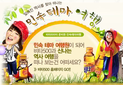 '비타500 민속 테마여행' 이벤트는 전국의 대학생이나 대학원생이면 누구나 ‘비타500 홈페이지(www.vita500.com)’에서 지원할 수 있다. 첫번째 행사인 6월의 당첨자 발표는 18일에 확인 할 수 있다.