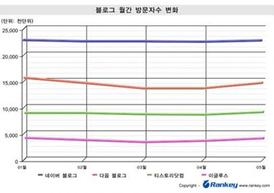 지난 5월 기준으로 네이버 블로그와 다음 블로그의 방문자수는 각각 2280만명, 1461만명으로, 올해 1월 대비 각각 0.36%와 6.22% 감소했다. SK커뮤니케이션즈가 운영하는 이글루스도 375만명으로, 2.55% 가량 줄었다.