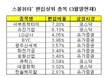 스몰뷰티의 투자대상은 펀드명처럼 중소형 종목들이다. 시가총액 100위권 밖의 종목들 중에서 가치와 성장성을 기준으로 투자한다.