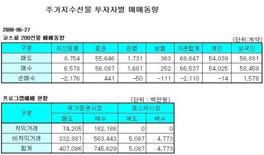 [표]주가지수선물 투자자별 매매동향-27일