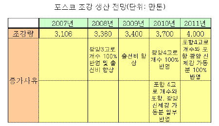 후판공장과 함께 후판의 원료인 슬래브를 공급하기 위한 연산 240만톤 규모의 제강공장 건설, 출선비 향상, 포항 신제강 증설, 광양3·4고로, 포항4고로 개수 작업 등이 완료되면 포스코의 조강생산능력은 2007년 3100만톤에서 2011년 4000만톤으로 늘어나게 된다.