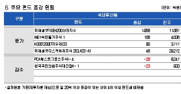 반면 PCA베스트그로쓰주식I- 4와 한국국민의힘주식재간접K- 1로는 각각 28억원, 23억원의 돈이 빠져나갔다.