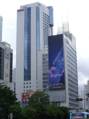 선전 중국전자 빌딩에 설치되는 LED 영상광고시스템은 LG CNS가 자체 개발한 LED 모듈로 길이 12.3미터, 높이 41.2m 규모의 옥외광고 시스템이다.