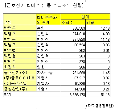 이에 대해 금호전기 관계자는 "회사 경영과는 무관한 박 회장의 지분 매입에 대해 회사측에서도 다소 의아해하고 있다"고 밝혔다.