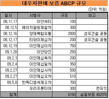 대우자동차판매가 지급보증한 자산유동화기업어음(ABCP) 잔액이 6000억원 가량 남아 있는 것으로 나타났다.