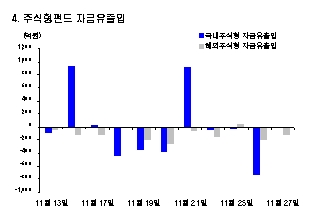1일 자산운용협회와 굿모닝신한증권에 따르면 지난달 27일 국내주식형펀드에선 4억원의 돈이 빠져나갔다.