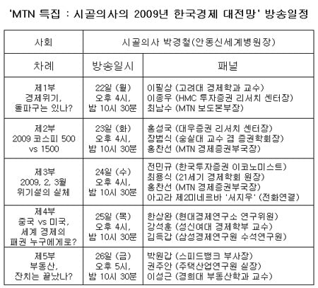 [MTN 특별기획 5부작, '시골의사의 2009년 한국경제 대전망' 토론회] 22일 오후 4시 첫방송