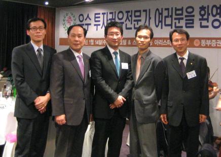 동부증권(12,120원 ▲140 +1.17%)(대표이사 사장 김호중)은 지난 14일 서울 라마다호텔에서 '2008 간접투자증권 취득권유자 연도상 시상식'을 개최했다고 15일 밝혔다.