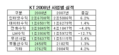 이런 KT의 가입자 이탈과 전화매출 감소는 KT의 수익기반이 근본적으로 흔들림을 의미한다. KT는 2006년 한해를 제외하고 2000년 이후부터 지금까지 매년 20% 전후의 영업이익이 줄어들고 있고, 이는 전체 매출의 절반가량을 차지하는 전화 매출에서 기인한다.