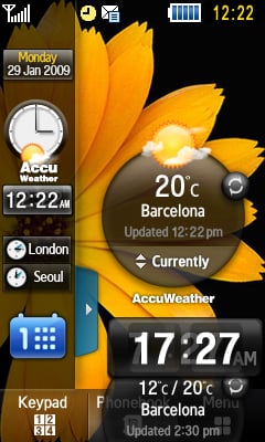 '위젯(Widget)' 기능도 대폭 강화됐다. 온라인 다운로드를 통해 다양한 위젯을 추가할 수 있고 사용 빈도가 높은 뉴스, 날씨, 증권 등의 실시간 정보 업데이트 가능하며, 필요하면 상하로 화면을 확대할 수 있다.