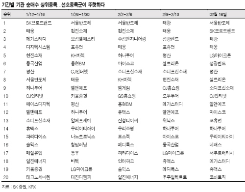 원종혁 애널리스트는 이날 "올 들어 코스닥시장의 기관 선호 종목군은 거의 변화없이 유지되고 있다"며 이렇게 말했다.