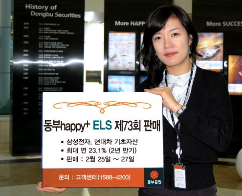 동부증권(12,120원 ▲140 +1.17%)은 25일부터 27일까지 ‘동부 happy+ 주가연계증권(ELS) 제73회’를 판매한다.