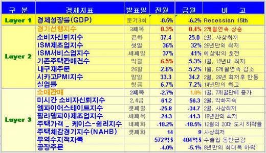 은행에 대한 정부지분 확대가 은행주주들에게는 고약한 것이니 은행주들이 폭락한다. 다른 한편으로는 경제지표의 부진이 투자심리를 위축시킨다. 4분기 GDP 수정치가 예상보다 큰 폭으로 하락하는 등 1/4분기가 최악이라는 예상을 그대로 나타냈다. 자동차, 부동산, 무역부분의 급락이 GDP 성장율을 끌어내린 요인이다.