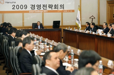 김승연한화(116,700원 ▲2,100 +1.83%)회장은 지난 2월 경영전략회의에서 올 초 보름간 일본을 둘러보며 느낀 점을 상세히 털어놓으며 경제위기에서 한화가 살아남을 수 있는 방안을 사장단과 논의했다.